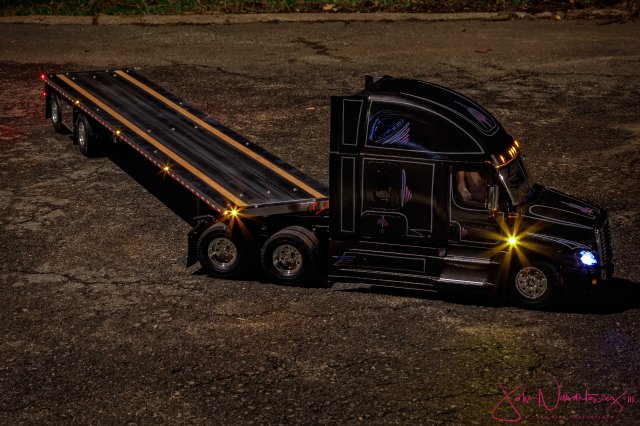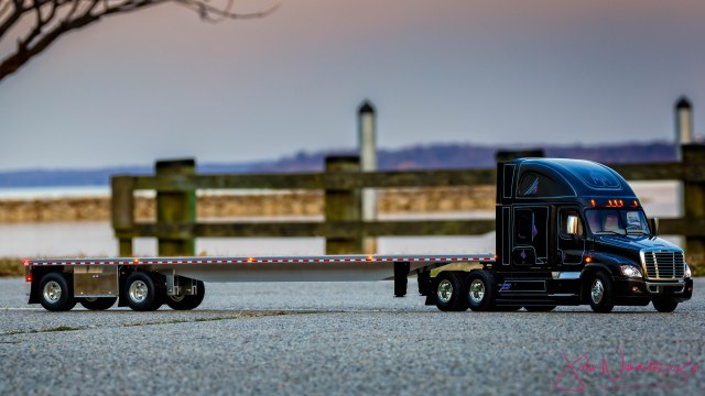 This is a 53ft flat deck spread axle trailer I just completed, 1-30-19, and shipped to my customer, John Nanartowicz, who has it hooked to his gorgeous Freightliner tractor. He just sent me these pictures. Beautiful rig!